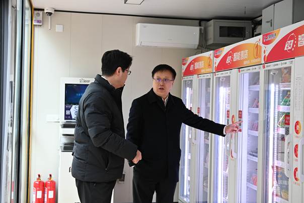 王君松一行重点听取了公寓智慧楼宇建设和基础设施升级改造的进展汇报,随后,检查组深入学生宿舍楼,实地察看了自助售货机、洗衣房、直饮水机等生活服务设施的运行情况,并现场询问了设备维护频次及学生反馈渠道,强调要从细微处入手,切实提升学生的居住体验。