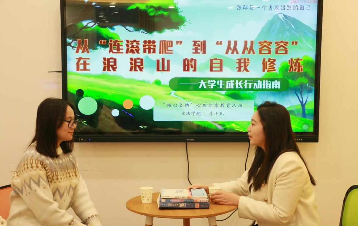 为切实提升大学生心理适应能力,帮助学生在面对压力与挑战时掌握有效的自我调适方法,近日,文法学院承办了“倾心之约”师生对话活动。活动以“从‘连滚带爬’到‘从从容容’:在‘浪浪山’的自我修炼”为主题,文法学院辅导员李小凡作为主讲嘉宾,通过情景访谈、理论探索与体验训练相结合的形式,吸引了近50名学生现场参与,线上学习达250余人次。