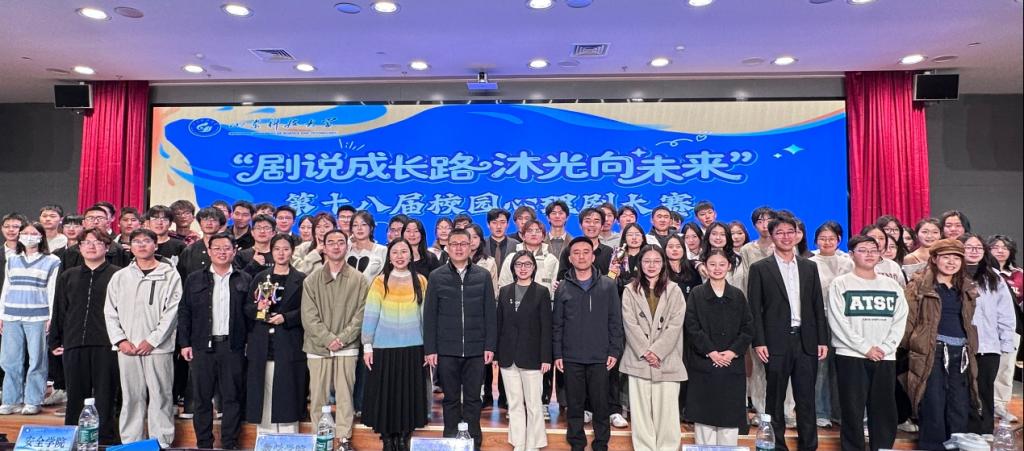 经过激烈的角逐,安全学院《苹果滚落的瞬间》和材料学院《一梦地府,青春不摆烂》荣获一等奖;土建学院《茫》、数学学院《蝶迹光尘》、外国语学院《Time thief(时光大盗)》、经管学院《破茧·人生不设限》荣获二等奖;机电学院等13个学院代表队的作品荣获三等奖;外国语学院、材料学院分别荣获最佳海报设计奖和最佳舞台演绎奖;安全院学生尹旭、经管学院学生王昕玥和材料学院学生沈佳慧等6名同学因表现出色分别荣获最佳男主角、最佳女主角等个人奖项;教师王雪霏、张步初、刘泽群、段雅君、李含聪、迟雯雯荣获优秀指导教师奖。