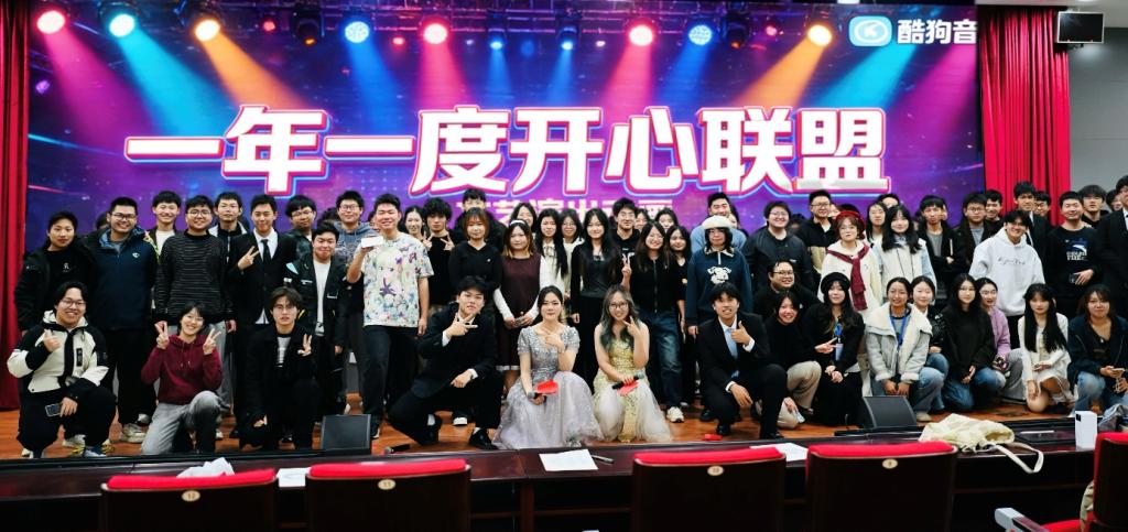 为缓解大学生期末备考压力,调节心理状态,2025年12月20日晚,“一年一度开心联盟”文艺演出在图书信息中心求新讲堂成功举办,300余名学生现场观看,共同享受了一场精彩纷呈的“开心盛宴”。