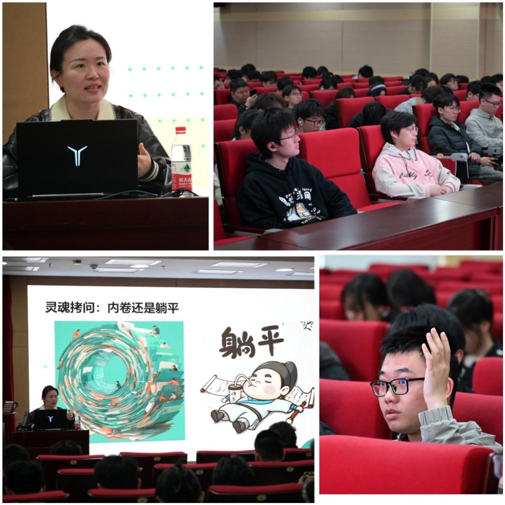 赵铭从当代大学生普遍面临的心理内耗现象切入,结合生动的校园生活案例,深入剖析了过度比较、自我否定、目标模糊等常见内耗来源。她指出,“内卷”与“躺平”并非仅有的两种选择,真正的出路在于减少无意义的心理消耗,回归自然、自驱的成长节奏。赵老师清晰区分了“积极进取”与“无效内卷”、“适度休整”与“消极躺平”的内在逻辑,引导同学们跳出二元对立的思维陷阱,建立以内在驱动力为核心的成长评价体系。讲座还设置了现场互动环节,针对学业绩点、考研升学、职业规划、同辈竞争等实际场景中的困惑逐一进行回应,鼓励大家用“可控的奋斗”替代“盲目的内卷”,用“主动的休整”替代“消极的躺平”。现场气氛轻松坦诚,同学们纷纷表示深受启发。来自经管学院的一位同学说:“以前总觉得自己只能在‘卷’和‘躺’之间二选一,听了赵老师的讲解,才明白真正重要的是找到自己的内在驱动力,感觉心里一下子敞亮了很多。”