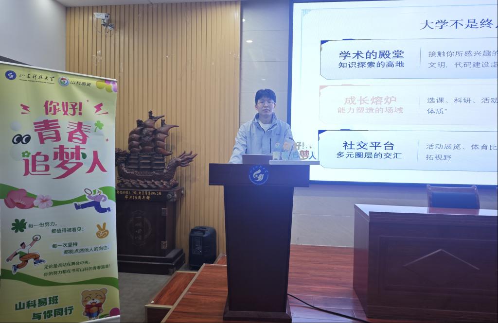 11月9日,由学生工作处主办、山科易班学生工作站承办的“你好!青春追梦人”优秀学生经验分享会于J6-433成功举办。本次活动特邀经管学院自律会负责人、班长张振超同学,结合自身经历,指导同学们破解“信息差”困境,培养主动获取与系统整合信息的能力。