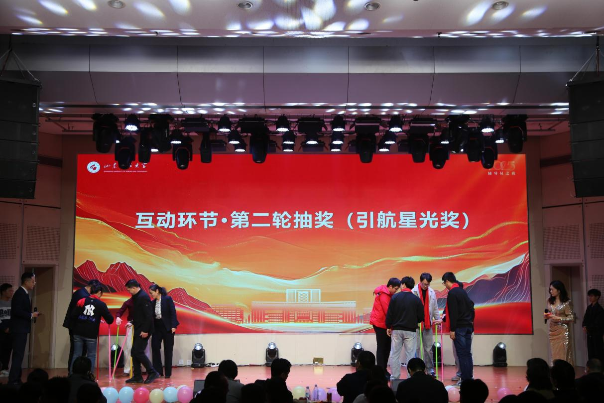 晚会穿插多轮互动抽奖环节,“耕心暖阳奖”“引航星光奖”“共赴山海奖”陆续揭晓,将现场气氛不断推向高潮。最终,机电、海洋与储能学院的舞蹈《追梦・欢舞:大家一起来》以欢快节奏为活动画上圆满句号。