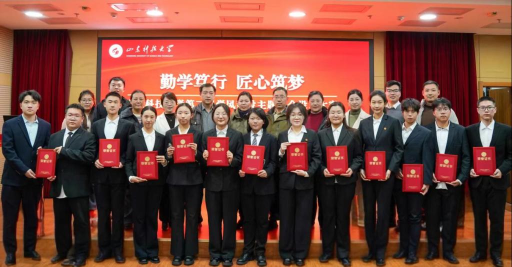 经评委组认真评审,最终能源学院智能采矿工程2024-2班、自动化学院电气工程及其自动化2024-4班、安全学院安全工程2025-1班荣获一等奖;经管学院会计学2023-1班等4个班级获得二等奖;化工学院应用化学2025-1班等5个班级获得三等奖。现场气氛热烈,获奖班级代表依次上台领奖,掌声不断。