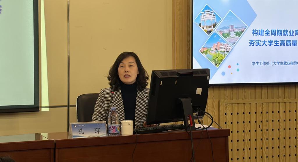 孔环以“构建全周期就业育人体系,夯实大学生高质量就业根基”为核心主题,结合自身长期深耕学生教育管理与就业指导一线的丰富经验,立足教育部对辅导员职业职责的明确要求,开篇便帮助新入职辅导员清晰厘清就业指导与人才培养之间的内在逻辑关联。她围绕当前就业工作实际,结合学校办学特色与近年来取得的突出成就,通过翔实鲜活的工作案例,深入剖析了大学生在就业过程中普遍存在的迷茫困惑、择业观偏差等突出问题,着重强调要将就业育人理念深度融入思政教育全过程,从学生进入大学时就要积极引导其树立正确的成才观、职业观、就业观。