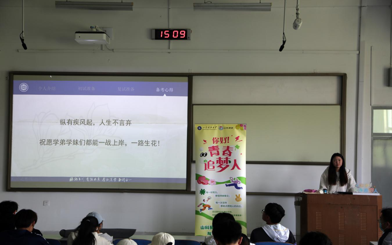 此次“你好!青春追梦人”经验分享会,为考研学子搭建了学习交流的平台,有效补齐备考信息短板、理清复习思路、缓解备考焦虑,帮助同学们以更坚定的信念与更科学的方法追逐考研梦想,在青春征程中奋勇前行。(通讯员:白镇源、燕一芃、史朝政 摄影:李鹏伟)